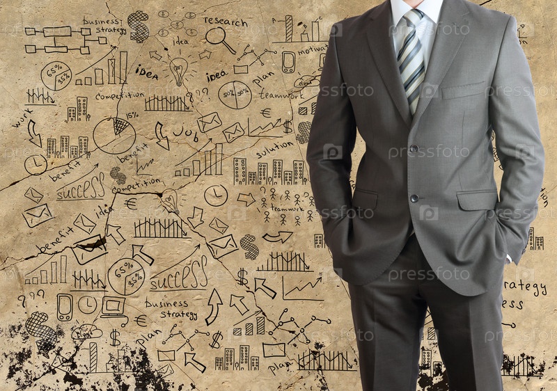 Мужчина в костюме и бизнес-план