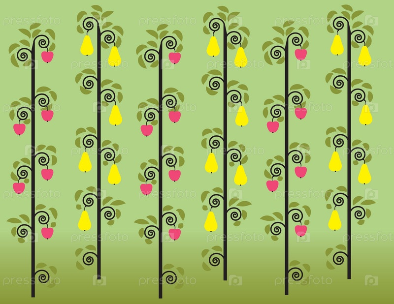 Фруктовые деревья на зеленом фоне
