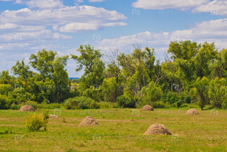 Копны сена лежат на лугу