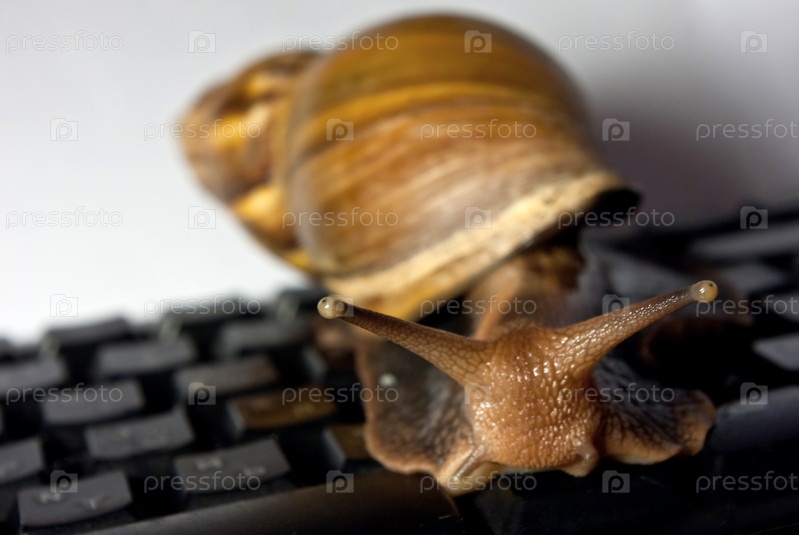 Achatina fulica улитка на черной клавиатуре