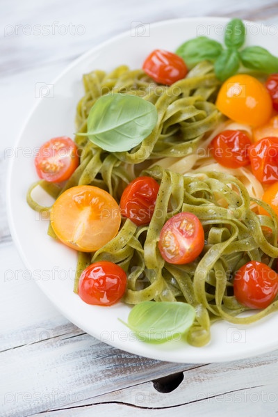 Отварные тальятелле с жареными помидорами
