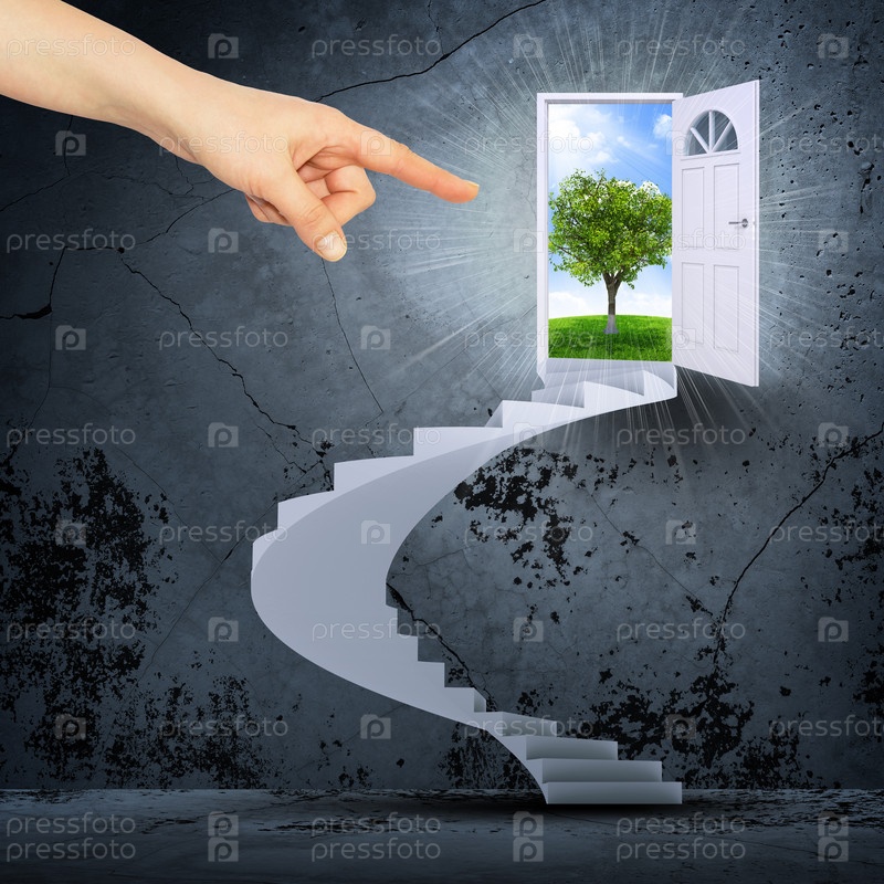 Палец, указывающий на лестницу