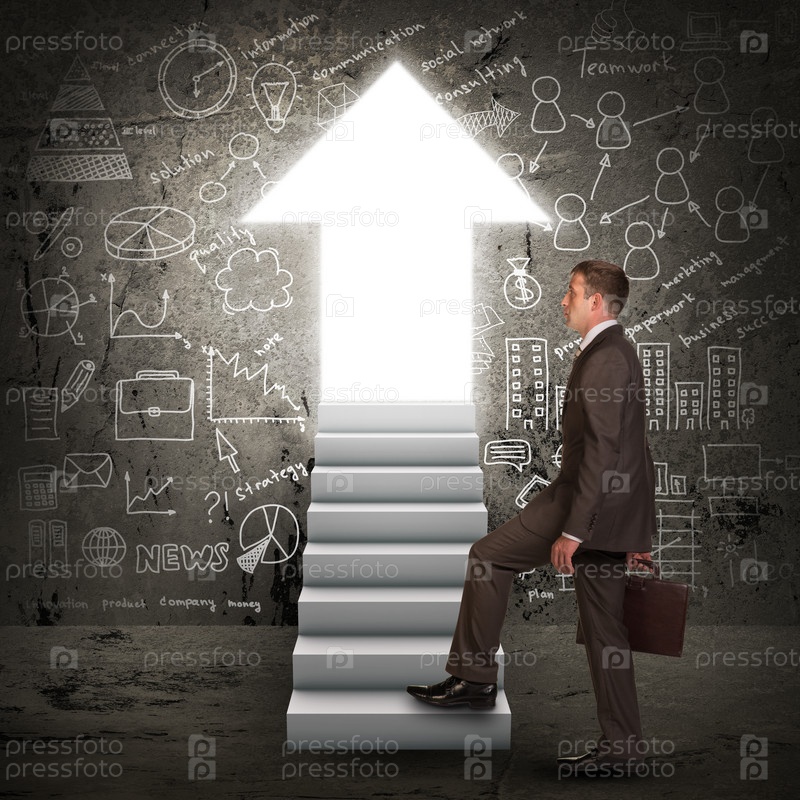 Бизнесмен поднимается по лестнице