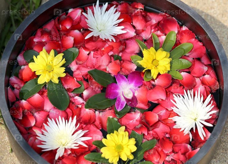 Чаша с водой и цветочными лепестками