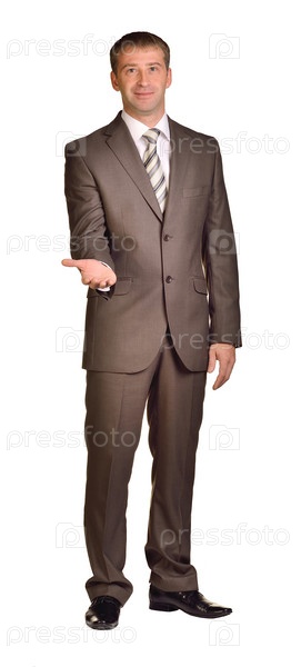 Бизнесмен держит руку перед собой