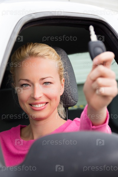 Женщина показывает автомобильные ключи