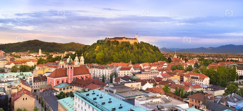 Любляна на закате. Словения, Европа
