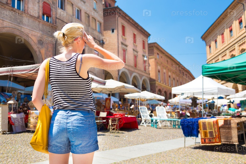 Женщина на блошином рынке в Болонье, Италия