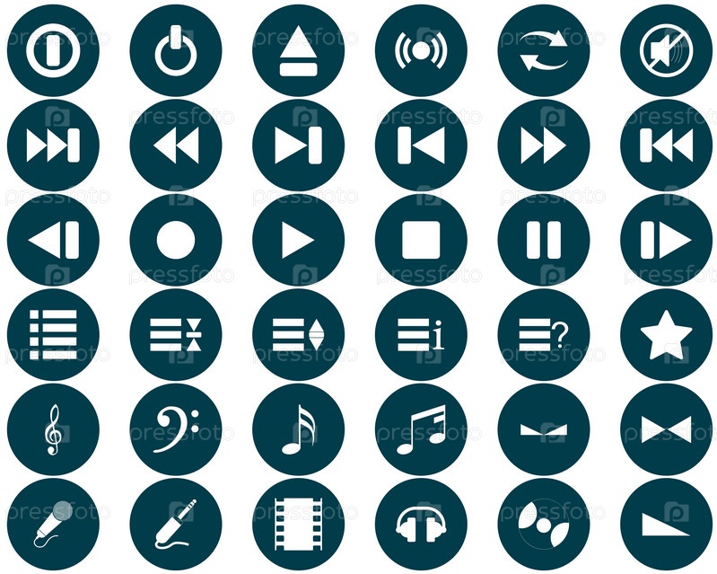 Набор музыкальных значков на белом фоне