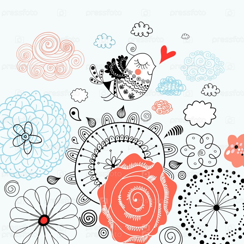 Цветочный фон с птицей