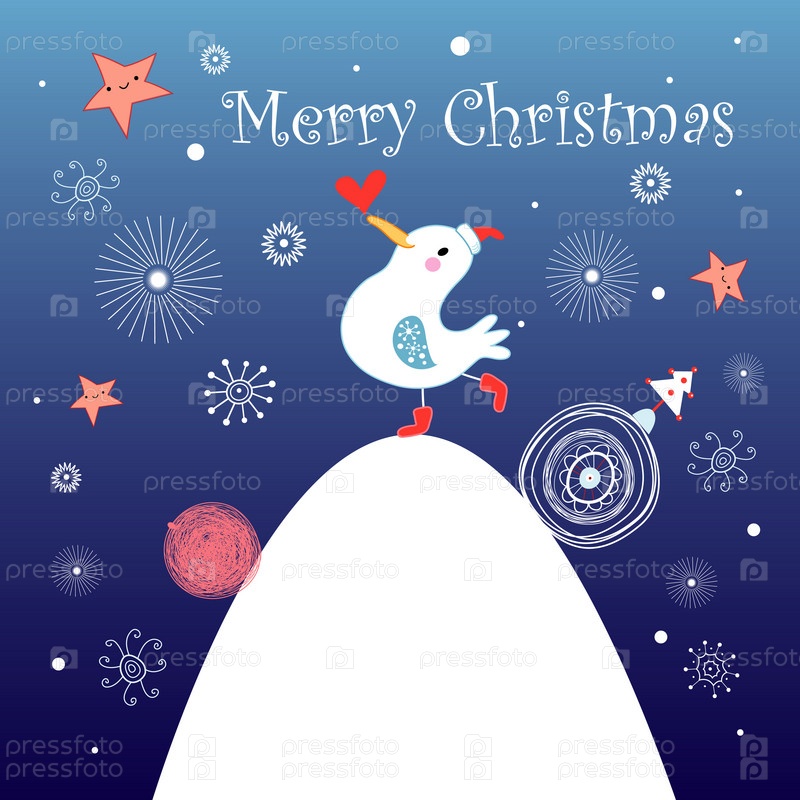 Рождественская открытка с птицей