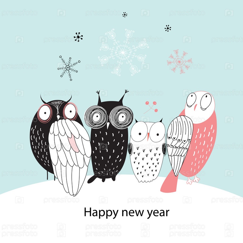 Зимняя открытка с совами