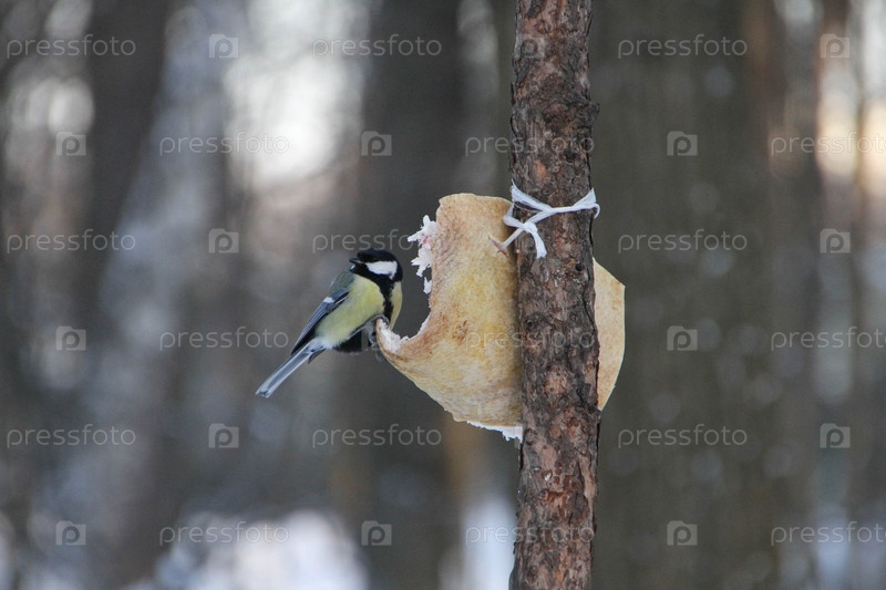 Синица ест сало