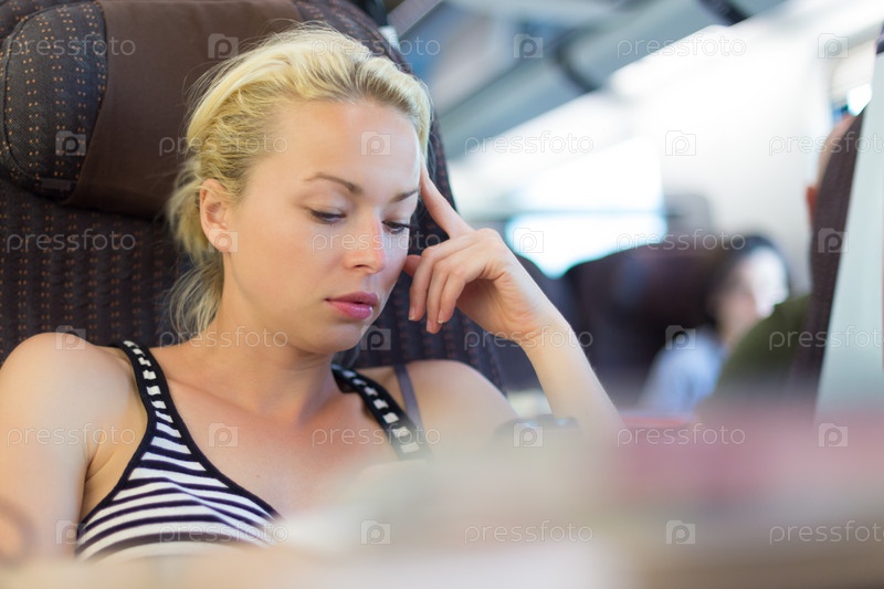 Женщина путешествует на поезде