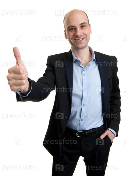 Деловой человек показывает большой палец