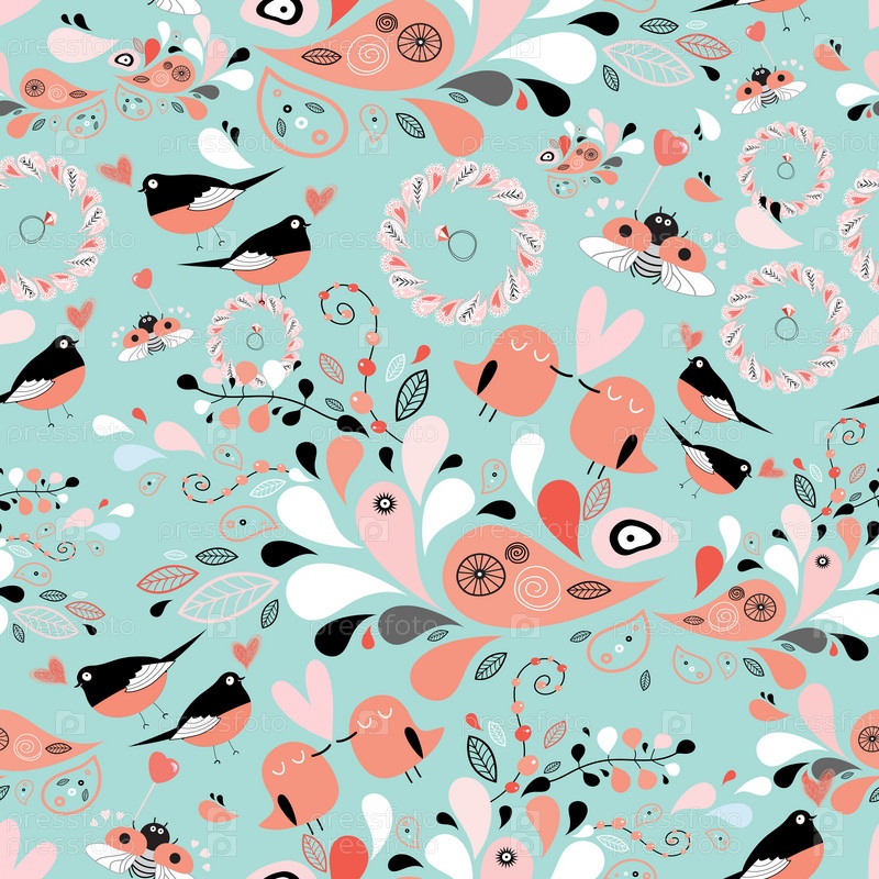Растительная текстура с птицами