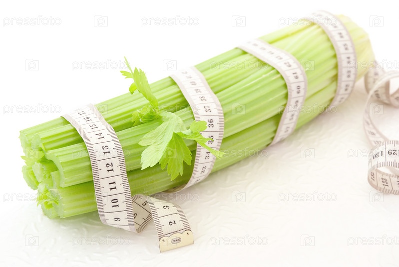 Сельдерей с сантиметровой лентой на белом фоне