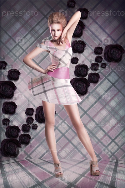 Женщина в клетчатом платье