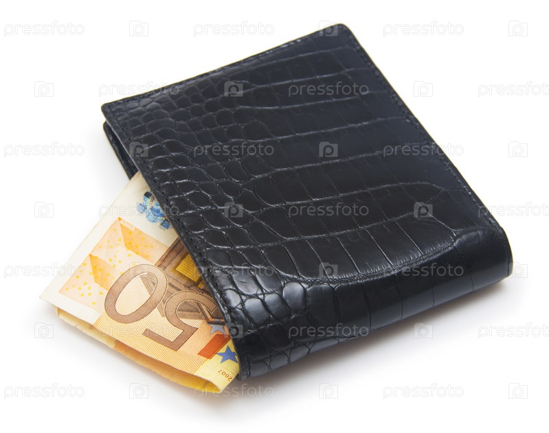 Кожаный бумажник с деньгами, изолированные на белом фоне