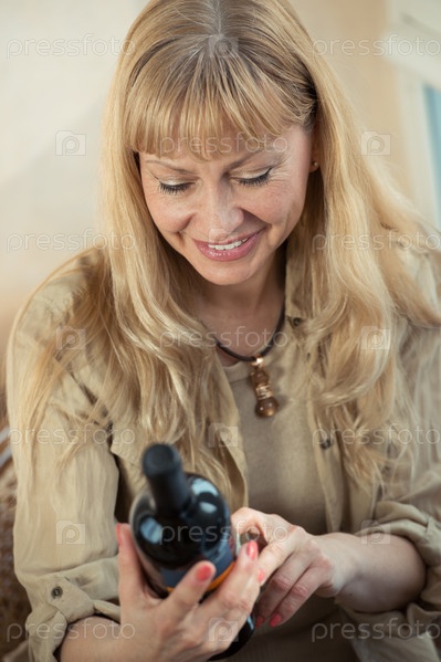 Женщина держит бутылку вина
