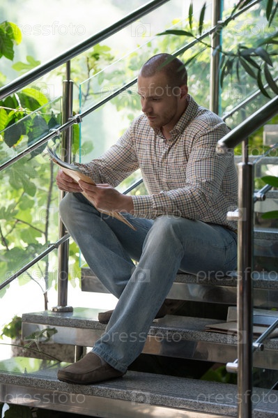 Бизнесмен сидит на лестнице