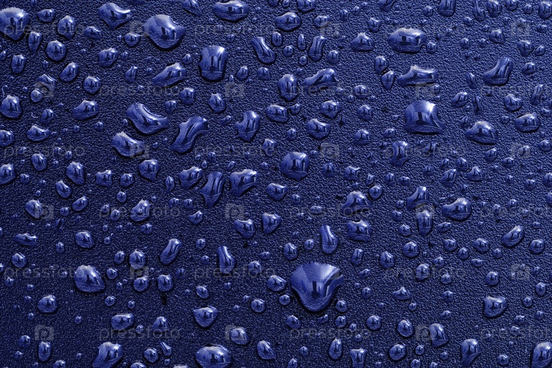 Капли воды крупным планом на синем фоне