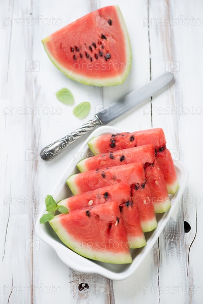 Ломтики арбуза с мятой