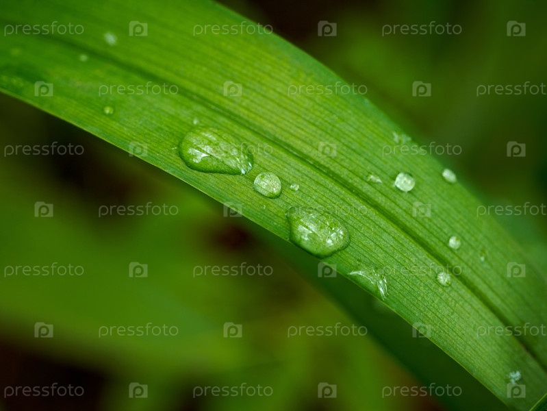 Капли росы на зеленой траве крупным планом