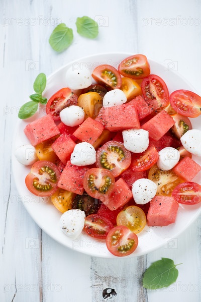 Салат с арбузом, помидорами и моцареллой