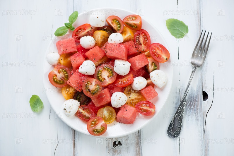 Салат с арбузом, помидорами и моцареллой
