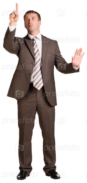 Бизнесмен с поднятой рукой