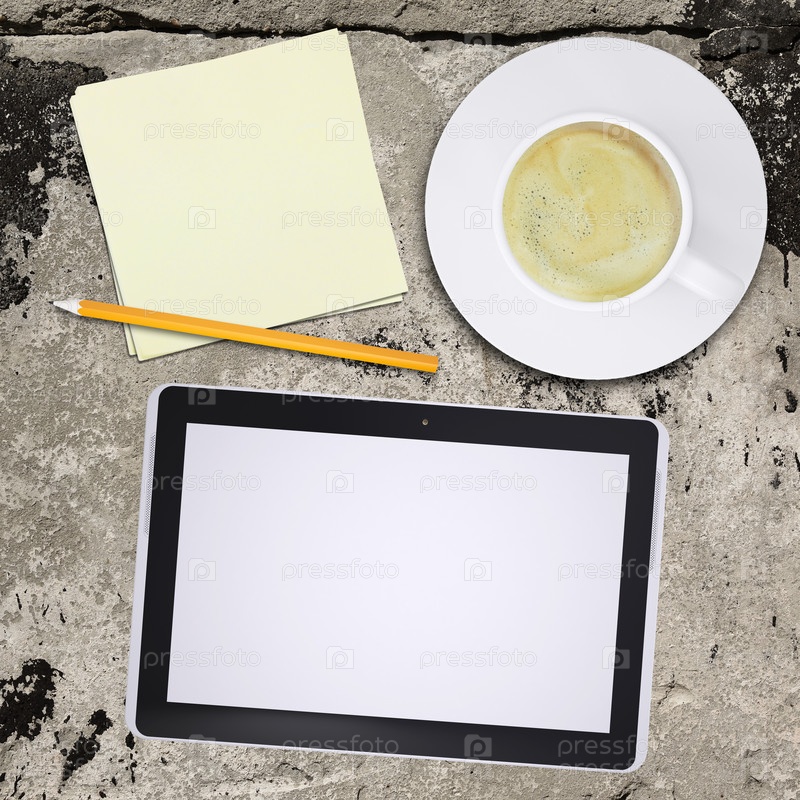 Планшет и чашка кофе