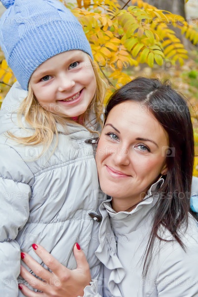 Мать и дочь в осеннем парке