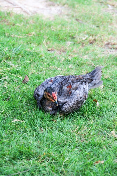 Курица сидит в траве