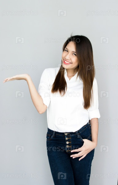 Азиатская девушка в рубашке и джинсах