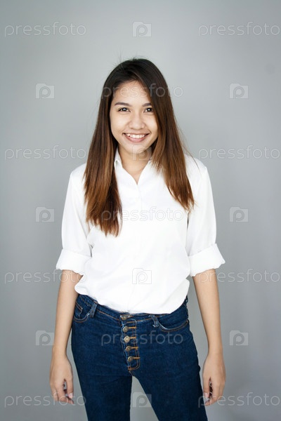 Азиатская девушка в рубашке и джинсах