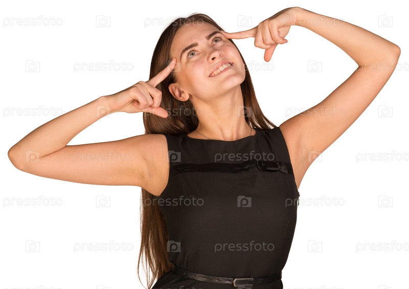 Девушка, приложившая пальцы к вискам