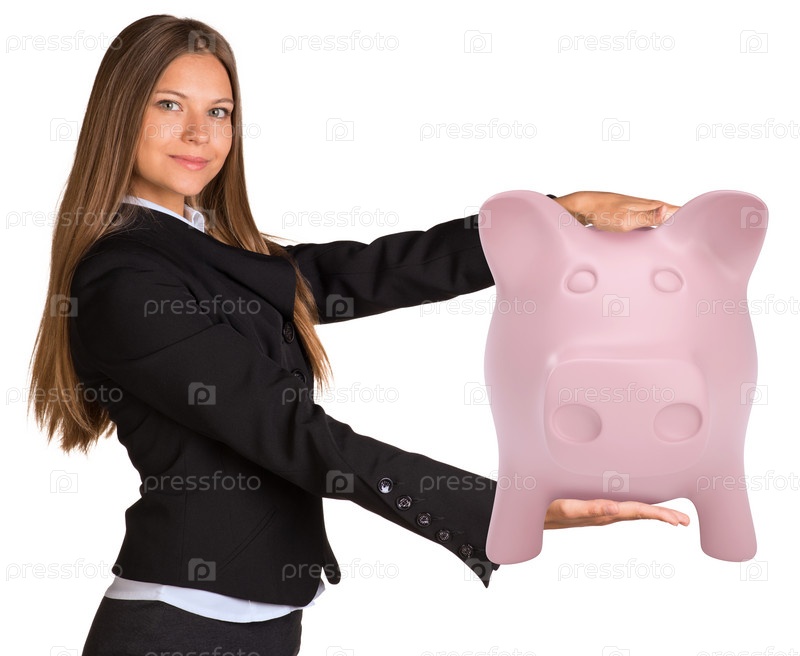 Деловая женщина с копилкой