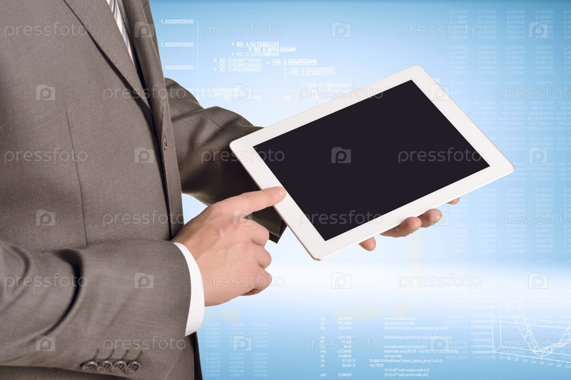 Бизнесмен держит цифровой планшет