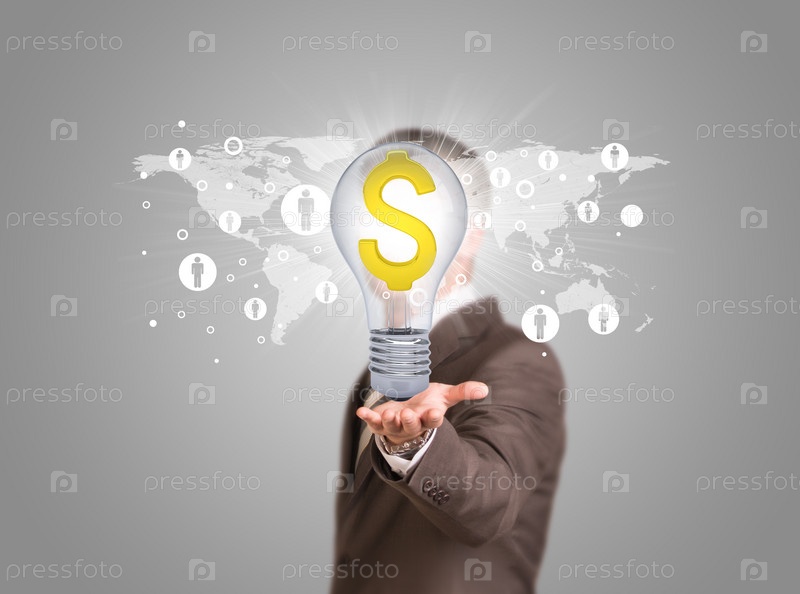Мужчина держит лампу с долларом