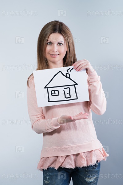 Женщина Хос рисунком дома