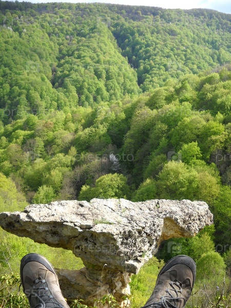 Ноги в ботинках на фоне кавказских гор