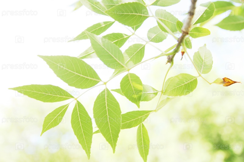 Молодые зеленые листья на ветке