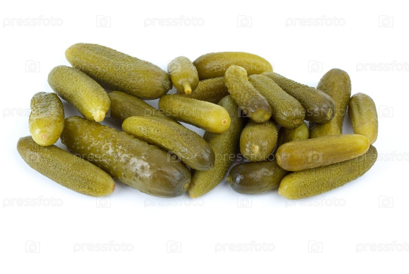 Соленые огурцы на белом фоне