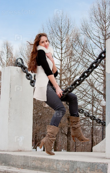 Молодая красивая женщина на улице в парке
