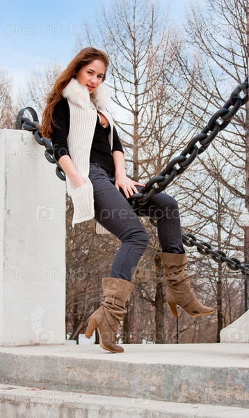 Молодая красивая женщина на улице в парке