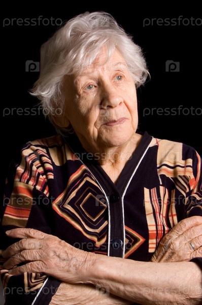 Портрет пожилой женщины на черном фоне