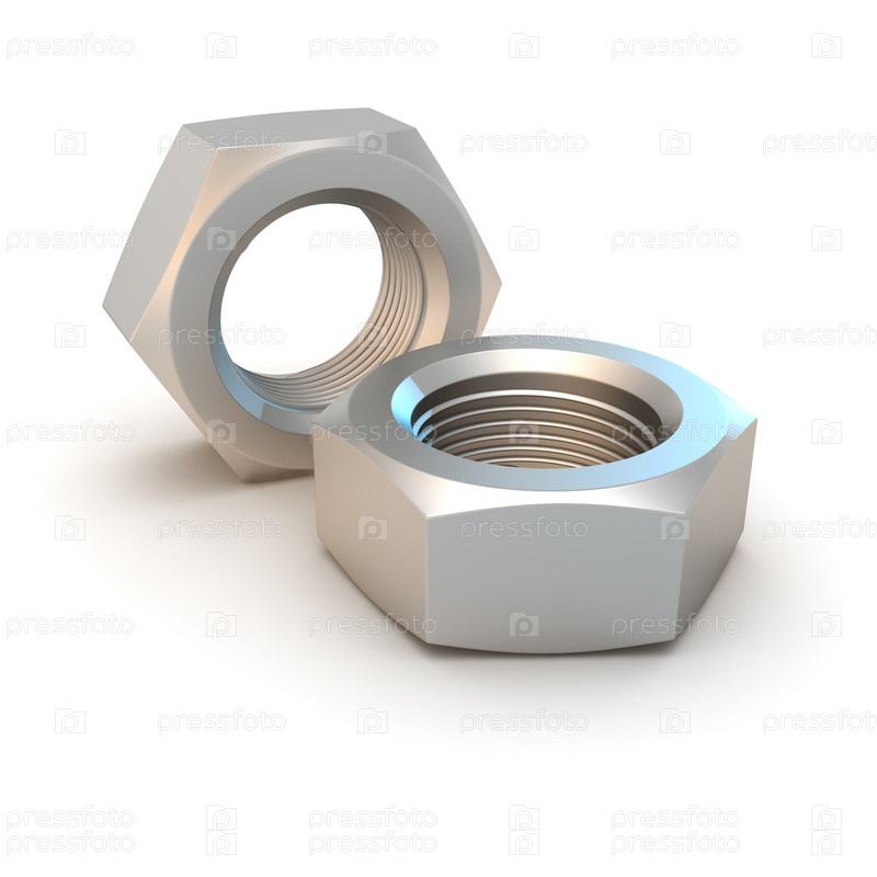 Две металлические гайки на белом фоне