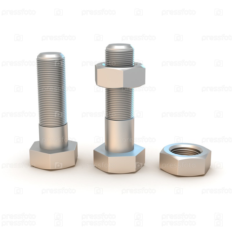 Два металлических болта с гайками на белом фоне