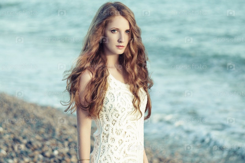 Рыжеволосая женщина на море